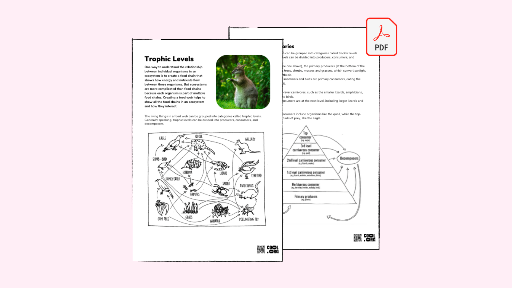 In this educational factsheet, we explore Trophic levels. One way to understand the relationship between individual organisms in an ecosystem is to create a food chain that shows how energy and nutrients flow between those organisms. However, ecosystems are more complicated than food chains because each organism is part of multiple food chains. Creating a food web helps to show all the food chains in an ecosystem and how they interact.