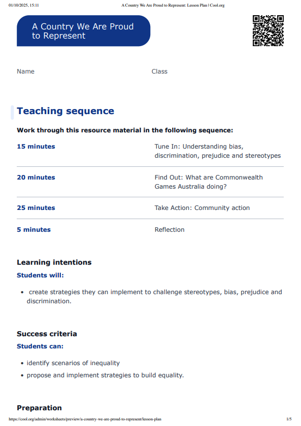 These resources have been created with the support of the Australian Commonwealth Games Team, via Commonwealth Games Australia.