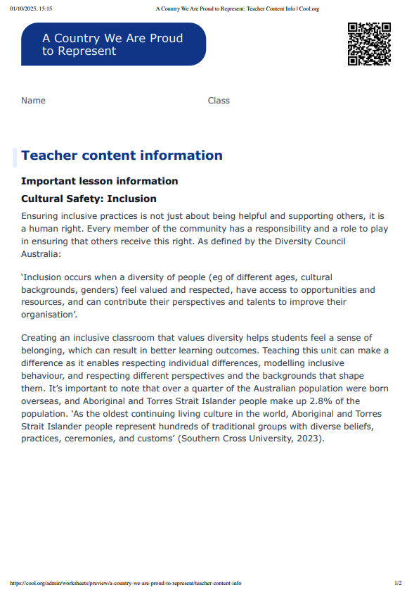 Aboriginal and Torres Strait Islander athletes have made an incredible impact on Australian sport, breaking barriers and paving the way for future generations. Students will develop their understanding of bias, discrimination, prejudice, and stereotypes. They will also develop a plan using the Cool.org Act Framework to implement action within their community to promote inclusion.