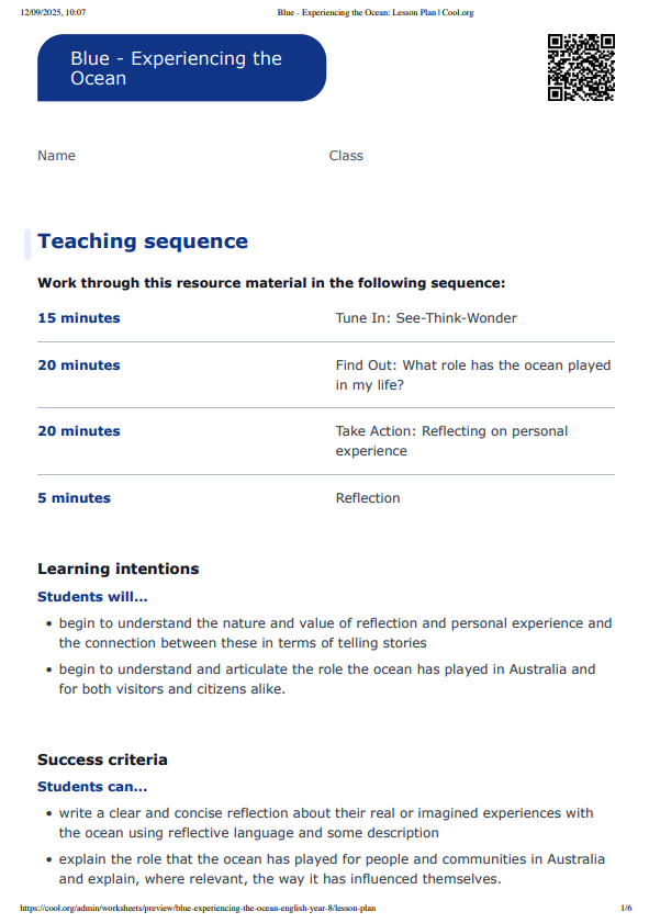 - write a clear and concise reflection about their real or imagined experiences with the ocean using reflective language and some description