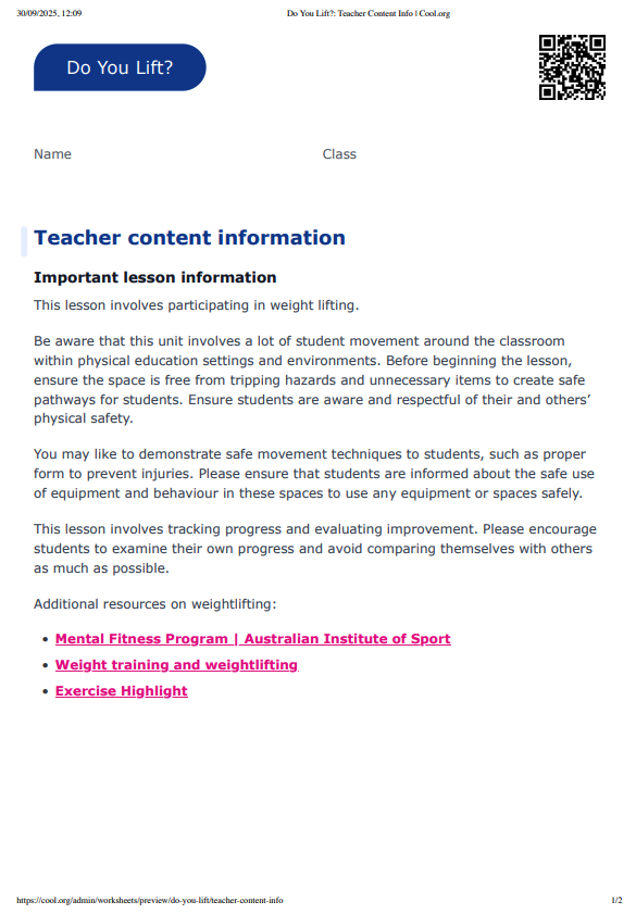 Level of teacher scaffolding: Medium - facilitate class discussion and supervise physical activities.