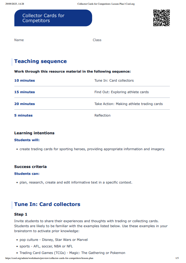 Students will plan, draft, and create informative texts by exploring and making creative athlete trading cards relating to an Australian Commonwealth Games athlete.