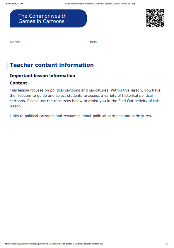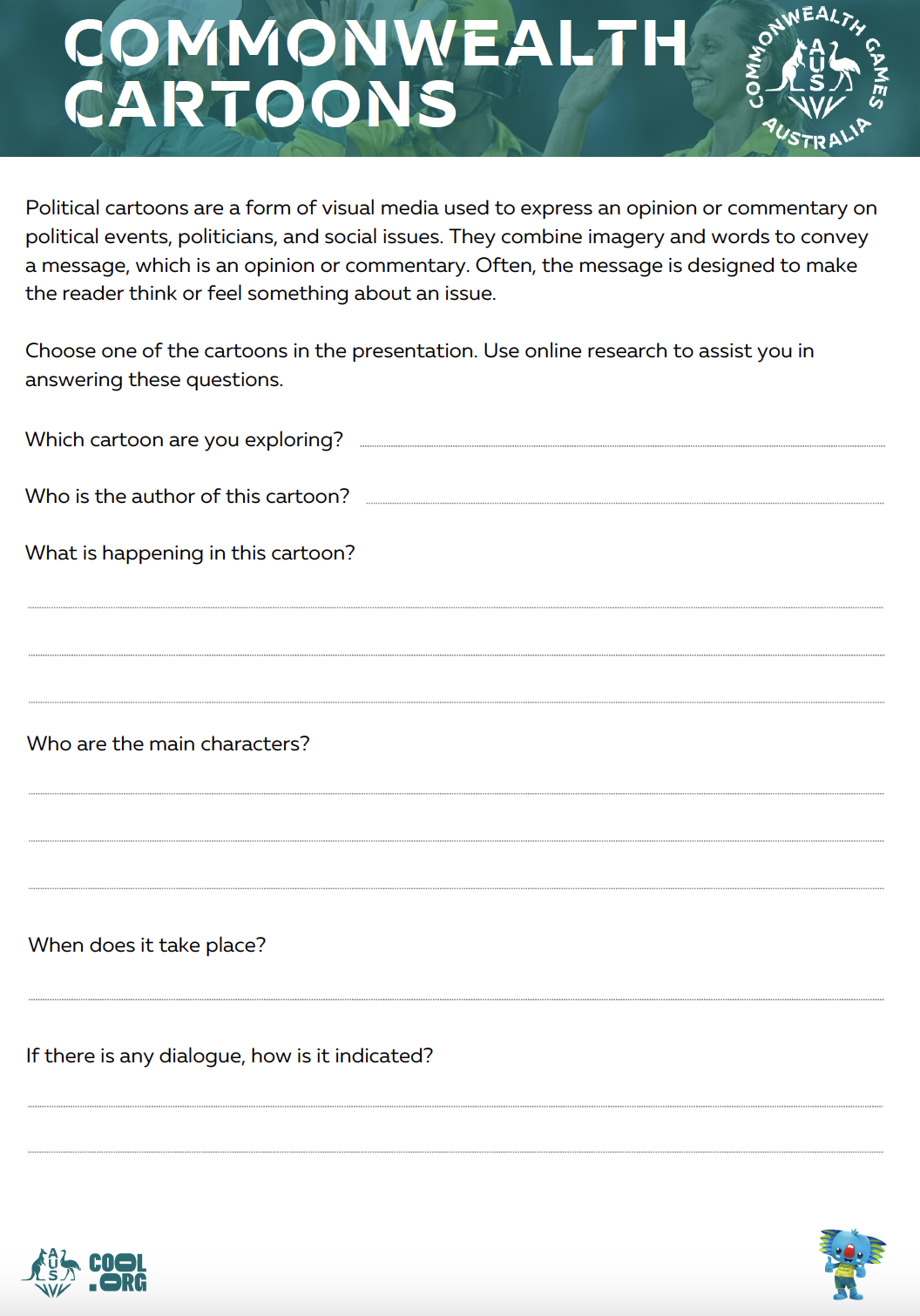 - explore political cartoon representations of the Commonwealth Games and Australian athletes
