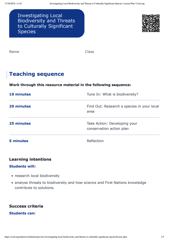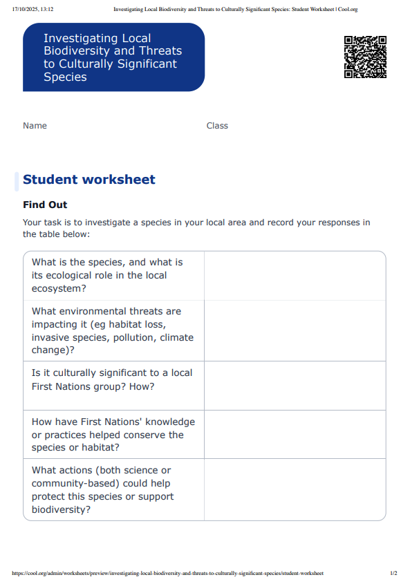 - analyse threats to biodiversity, and how science and First Nations knowledge contribute to solutions.
