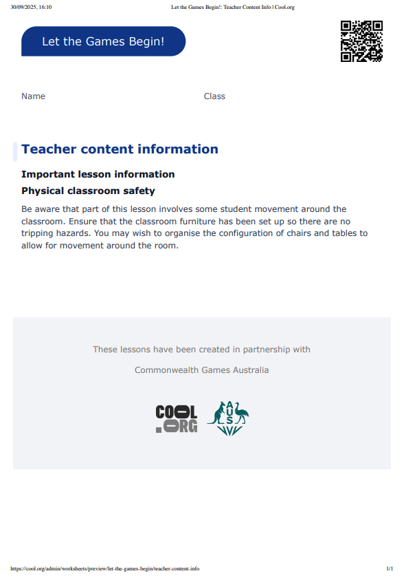 These resources have been created with the support of the Australian Commonwealth Games Team, via Commonwealth Games Australia.