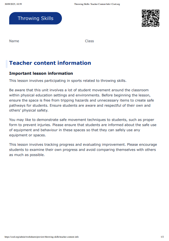 Students will use movement skills, collect and analyse data, and display data using technology by trying different throwing techniques in different situations. They will then collect, organise, and display data about the effectiveness of different techniques.