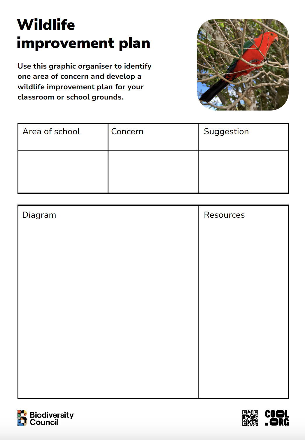 Students will conduct an area audit of their school to identify places or features that support wildlife and those that may threaten it. Using real-world examples, they will explore how everyday human activities affect habitats and food chains, and will share their findings through interactive learning lab presentations. Students will identify a local concern for wildlife and work together to design a Wildlife Improvement Plan for the class to consider as a future project.