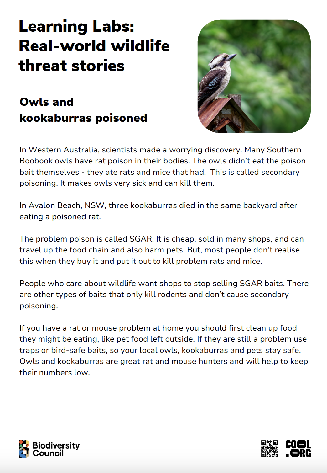 - recognise how items like certain rat baits, pets or plastic harm native species