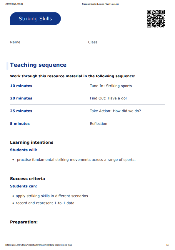 - practise fundamental striking movements across a range of sports.