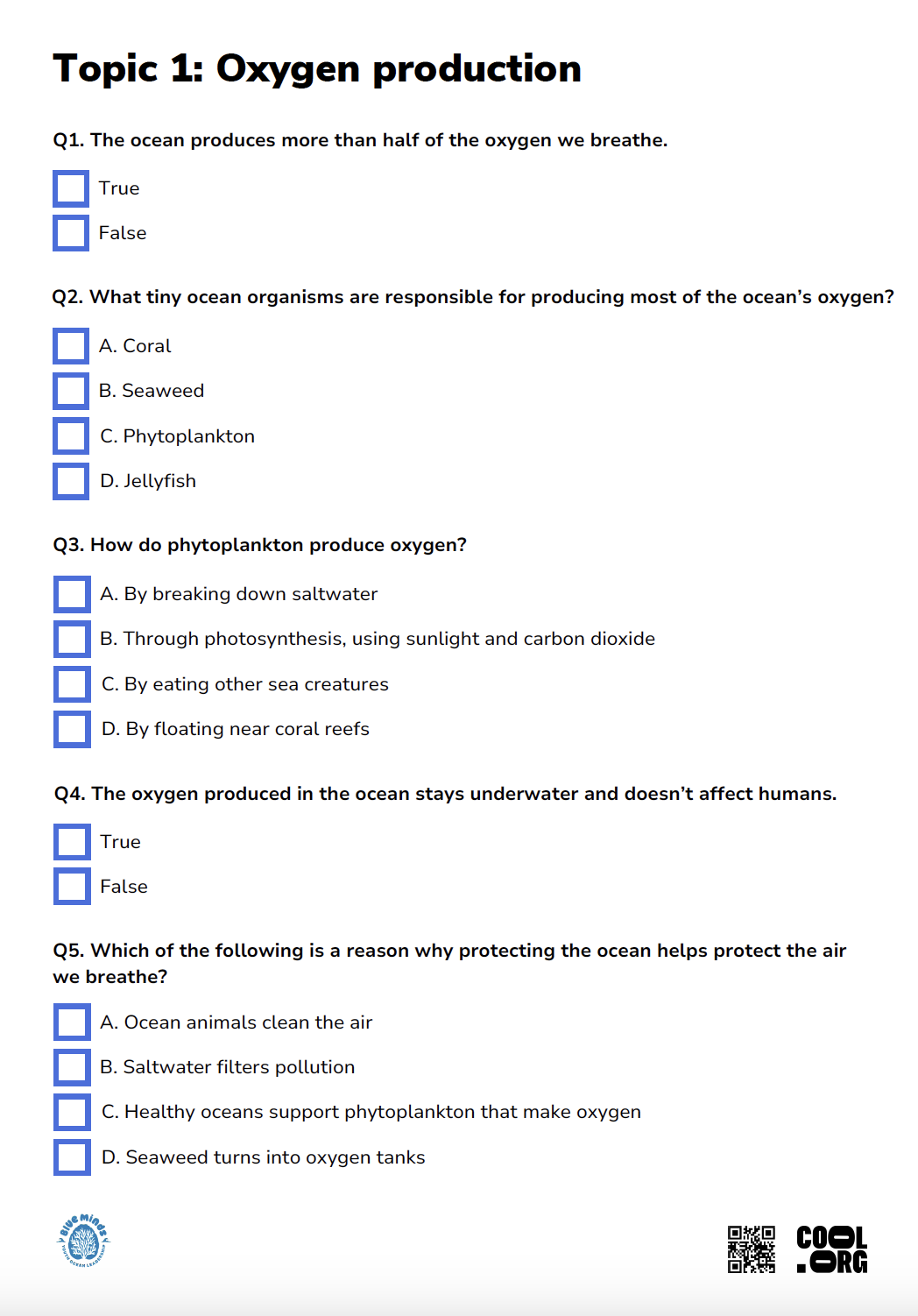 - investigate the critical ecological role of oceans and communicate key facts that build ocean literacy.