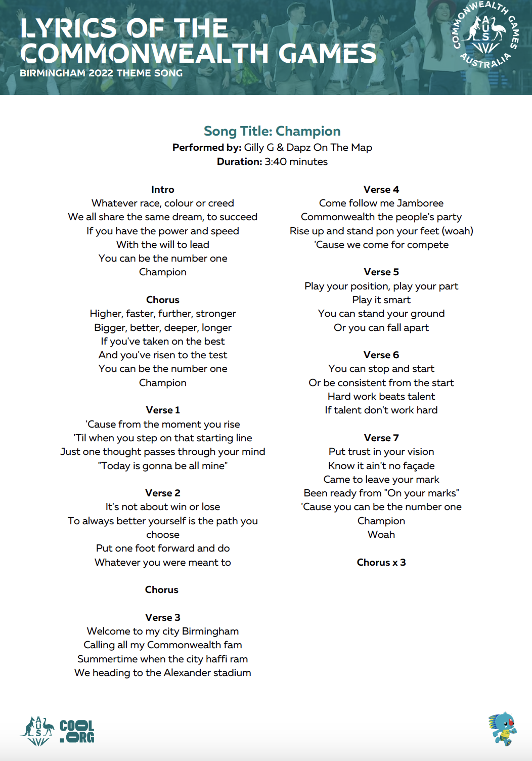 - Lyrics of Commonwealth Games Theme Songs Sheet