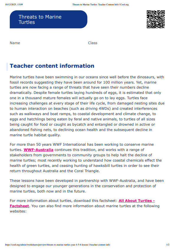 This lesson has been developed in partnership with WWF-Australia. WWF-Australia has been working to conserve marine turtles and the habitats they live in. Following this lesson plan is an ideal way for your school to celebrate World Turtle Day on the 23rd of May. Join with other amazing teachers and students around Australia who are taking action to conserve marine turtles.