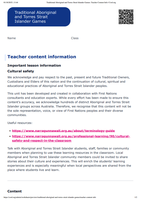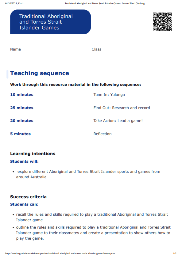 - explore different Aboriginal and Torres Strait Islander sports and games from around Australia.